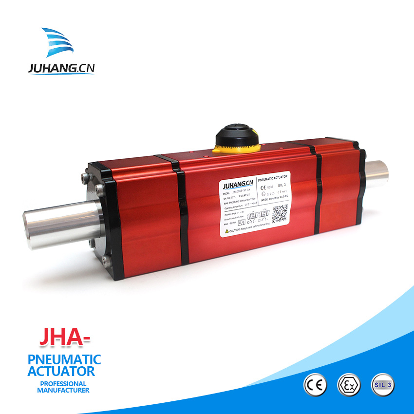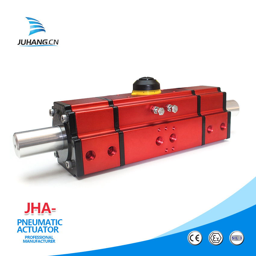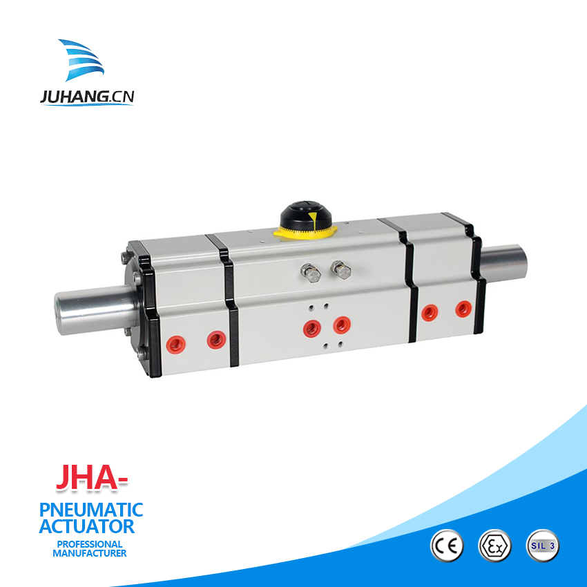 Serija JHA: 3-stopenjski pnevmatski aktuator je pogon posebne specifikacije, ki lahko zagotovi tri-položajske načine delovanja 0°-180°. Vmesni položaj se upravlja z mehanskim zaviranjem gibanja dveh pomožnih batov. Srednji položaj je nastavljiv, kot je aktuator 90° kotnega hoda lahko zagotovi 20°, 30°, 50°, 70° in druge vmesne položaje.